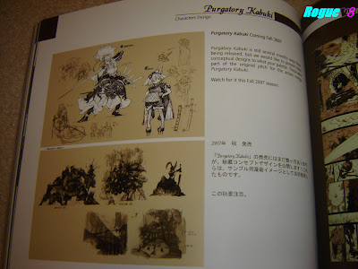 The books contains a lot of artwork I'm sure people are not familiar with. They include mostly novels, (mini) comics, card, original illustrations. There's only 2 Sin and Punishment artwork (as shown). The art featured the most would be Ikaruga. While I like Ikaruga's art, it's not my style (a lot of mech) and the character illustrations pales to his other works (but still good compared to other artists). Purgatory Kabuki, gets a page of chara designs, which is a nice preview I guess.